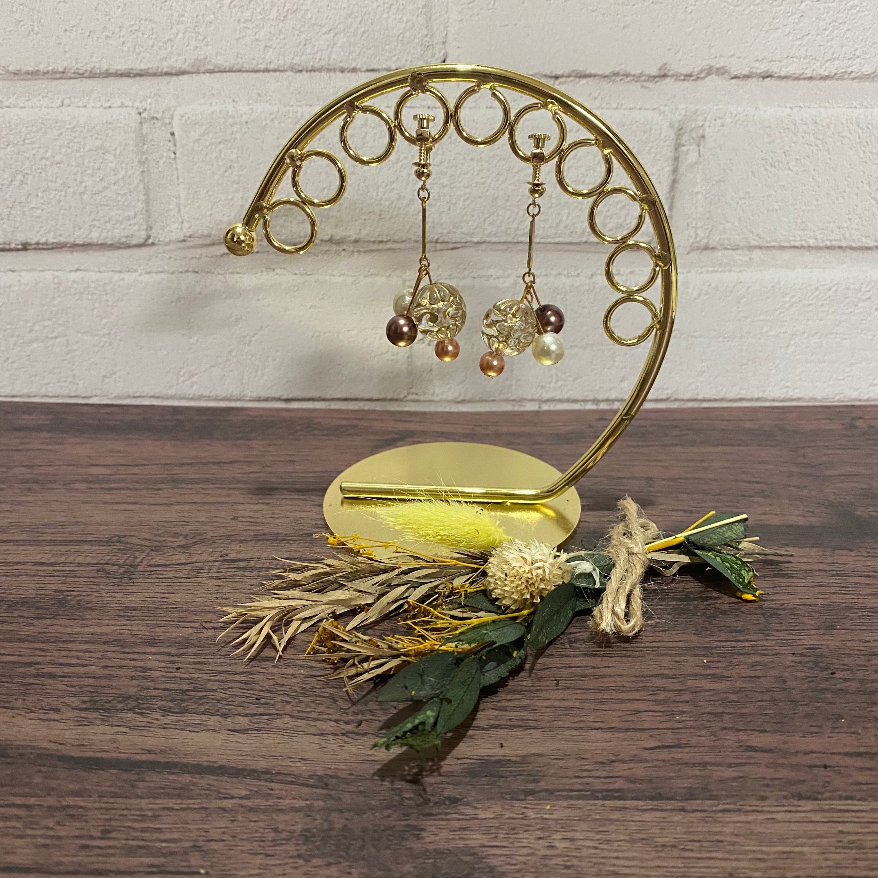 短めの大ぶりイヤリングとなってる為、普段つけない方でも付けやすく、色んなコーデに合わせられるようになってます。