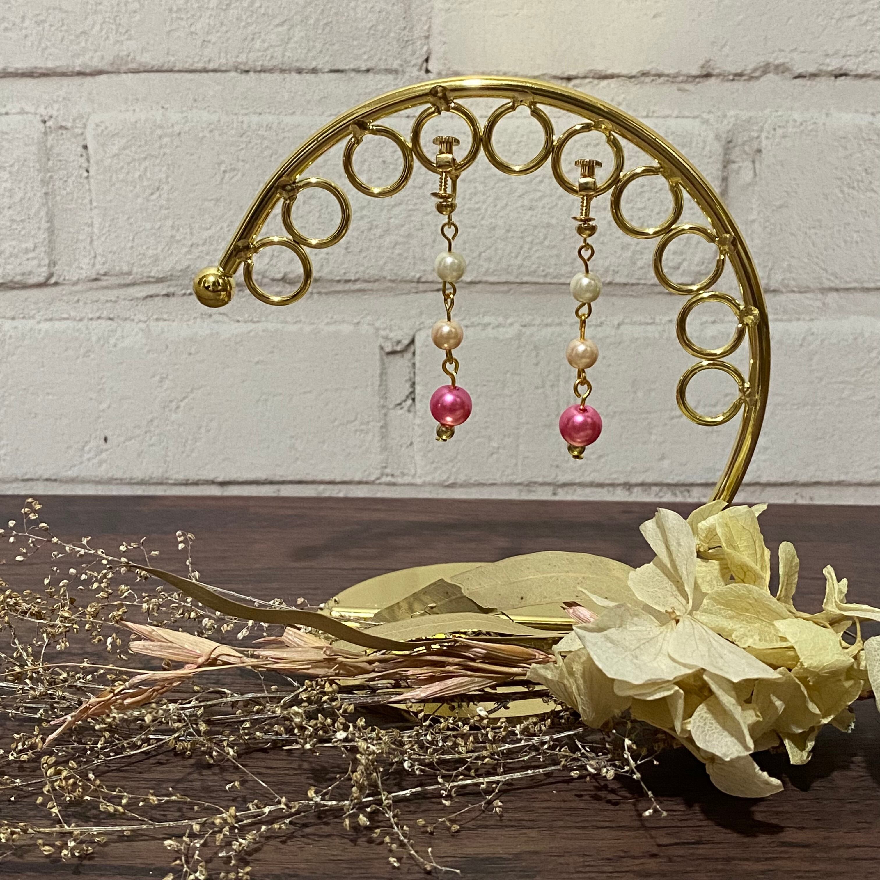 パールビーズを3連に繋げたシンプルで大人っぽいイヤリングです。色んな色のイヤリングがあるため、どんなコーデにも合わせやすくなっております。LIVEとかの推しカラーにも使いやすいと思います!パールビーズイヤリングNO.1にも他の色のイヤリングを載せてますので、ご覧下さい。